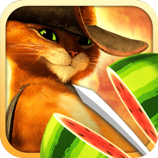 - По мотивам мультфильма «Кот в сапогах» выпустили отдельную часть популярной игры Fruit Ninja.